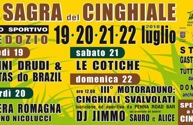 La Sagra del Cinghiale di Tredozio 2018, 11esima edizione, si terrà dal 19 al 22 luglio 2018. Qui sotto troverete la locandina - programma.